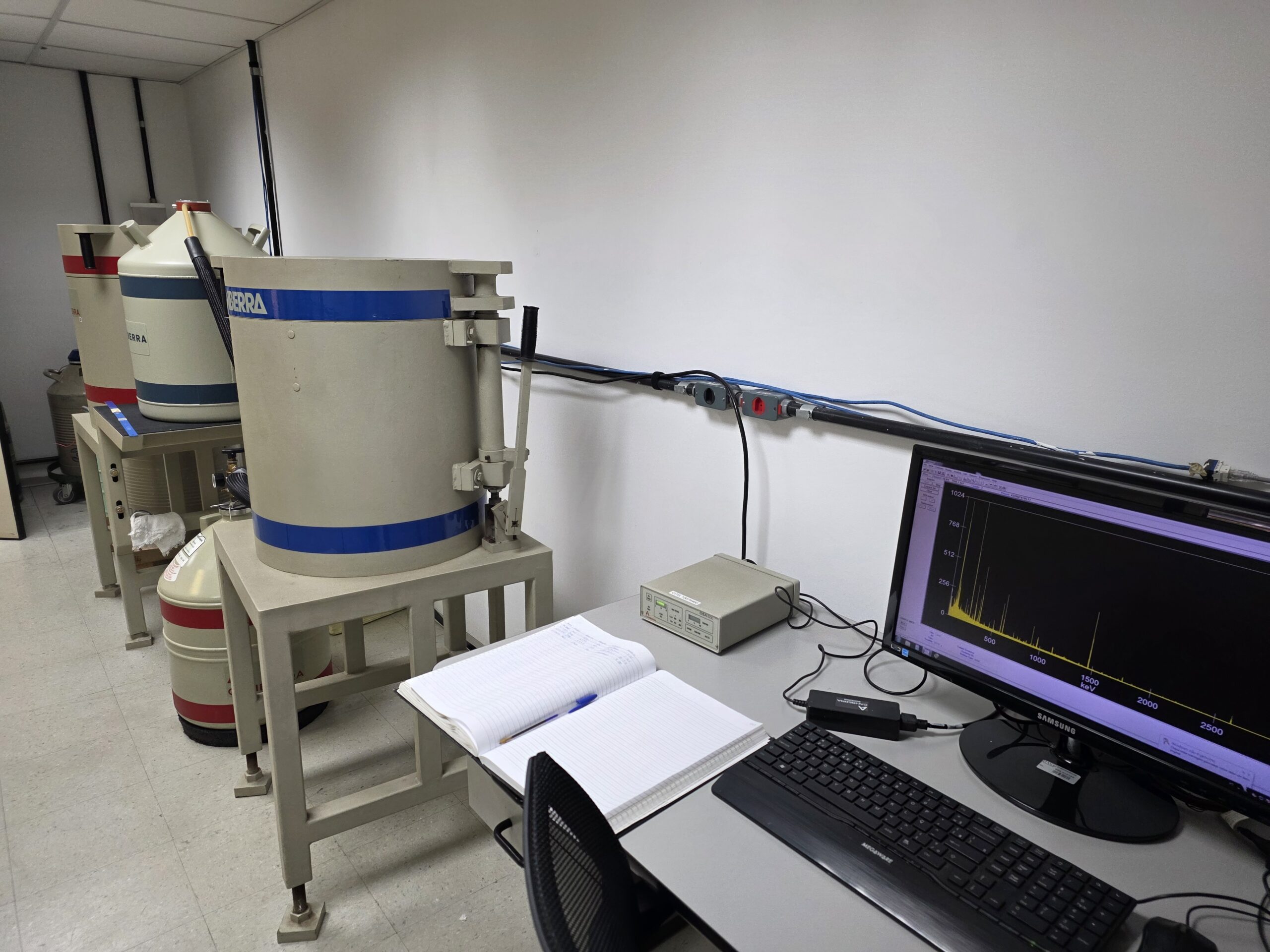 Gamma spectrometry room – equipped with a high-purity germanium detector (HPGe, Canberra Industries) for low-count gamma spectrometry, installed inside a lead shield and cooled with liquid nitrogen.